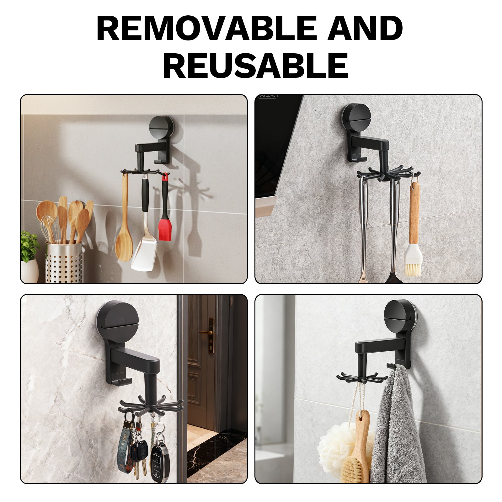 Suction Cup Hooks - 360° Rotating Wall Mount Organizer, No Damage Adhesive Free Hooks for Walls, Kitchen, Bathroom, Cooking Utensil Holder, Key Holder, Dresser(8 Hooks) (Grey)