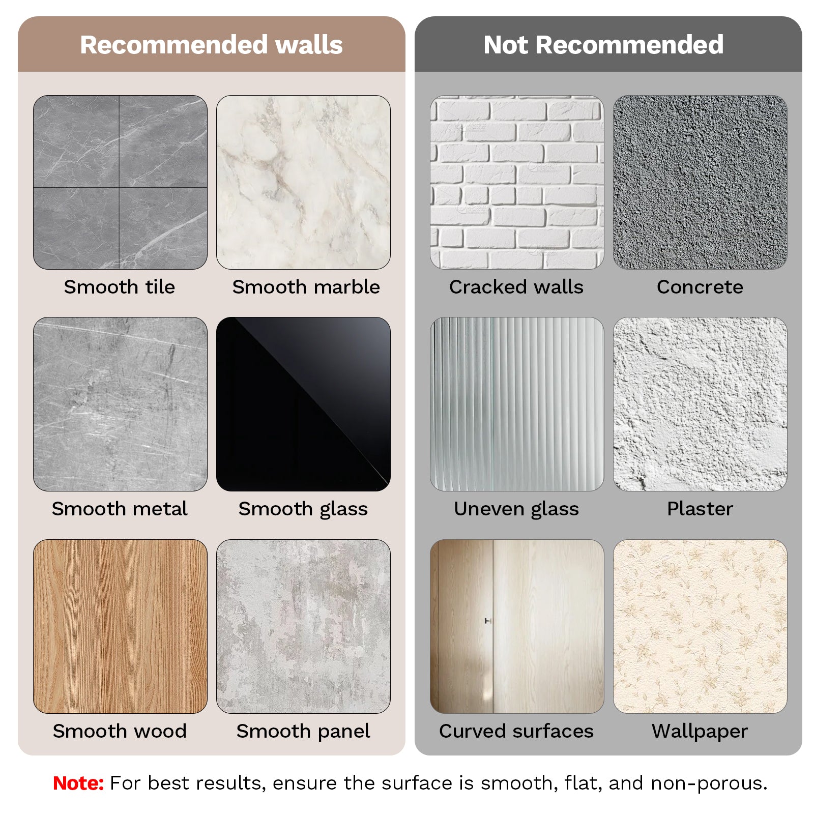 【Damage-Free Installation & Flexible Placement】No drilling or nails needed. Easy to use: just clean the wall, press the suction cup, and lock the plate. Removes without residue, allowing flexible repositioning anytime.